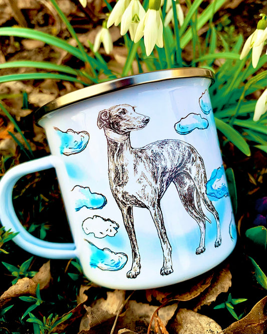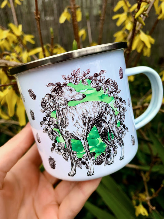 Agár bögre - Álló Agár kutya mintával és Gyümölcsös mintával - Fém