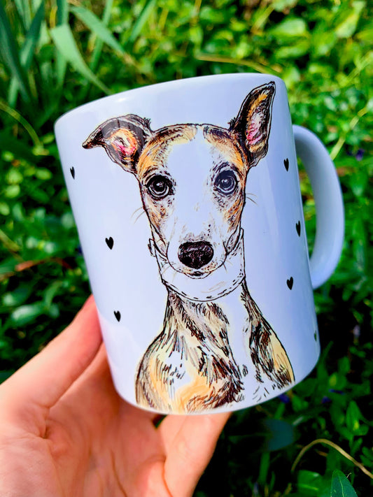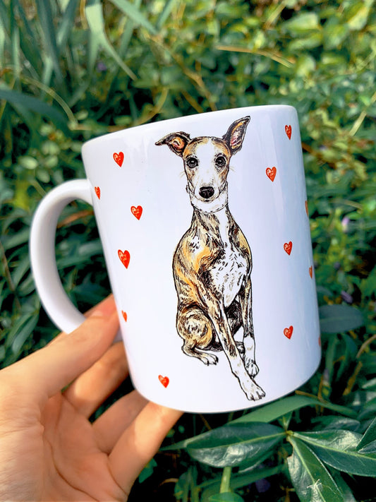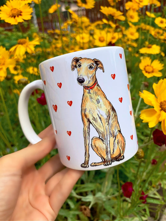 Agár kutya bögre - 2 féle bézs Agár kutya és szív mintákkal - Kerámia