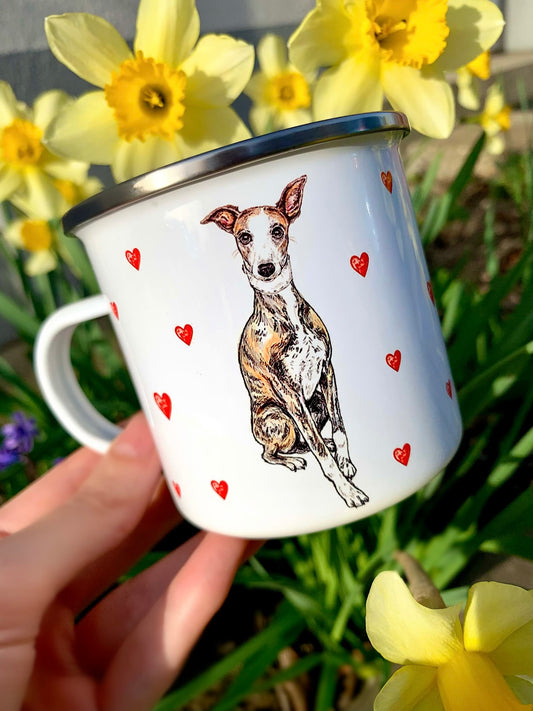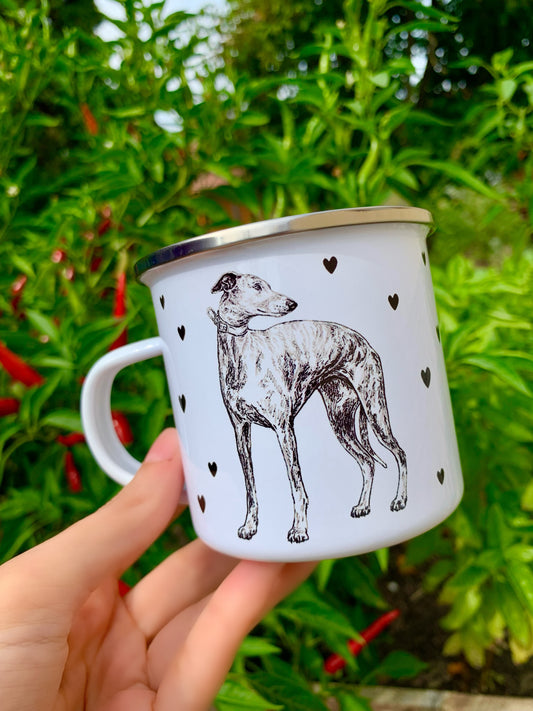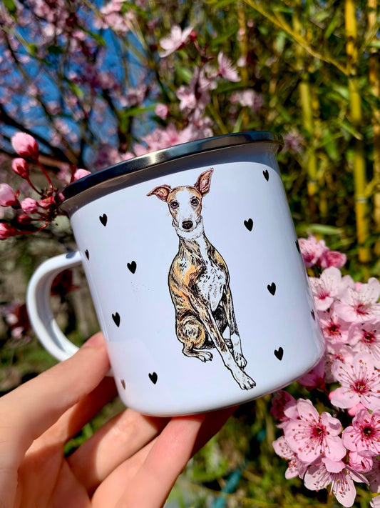 Agár kutya bögre - 2 féle Álló Agár kutya mintával és Fekete szív mintával - Fém