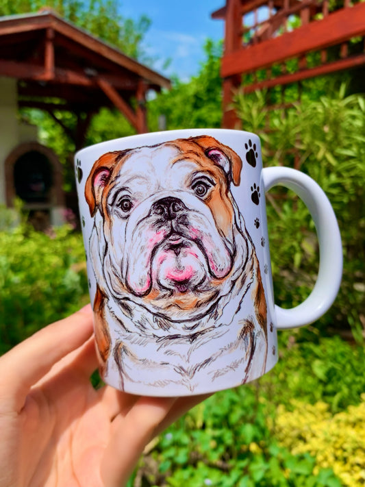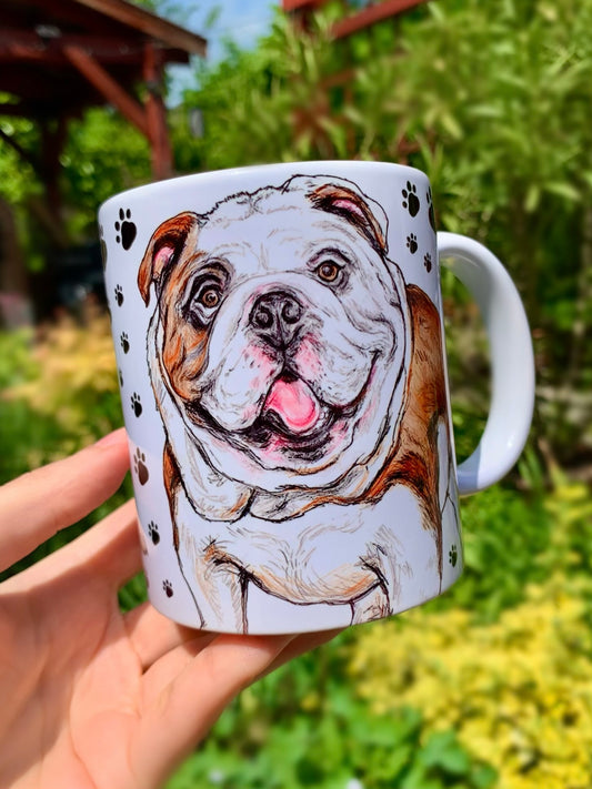 Angol bulldogos kerámia bögre – Kézzel festett angol bulldog és mancs mintával