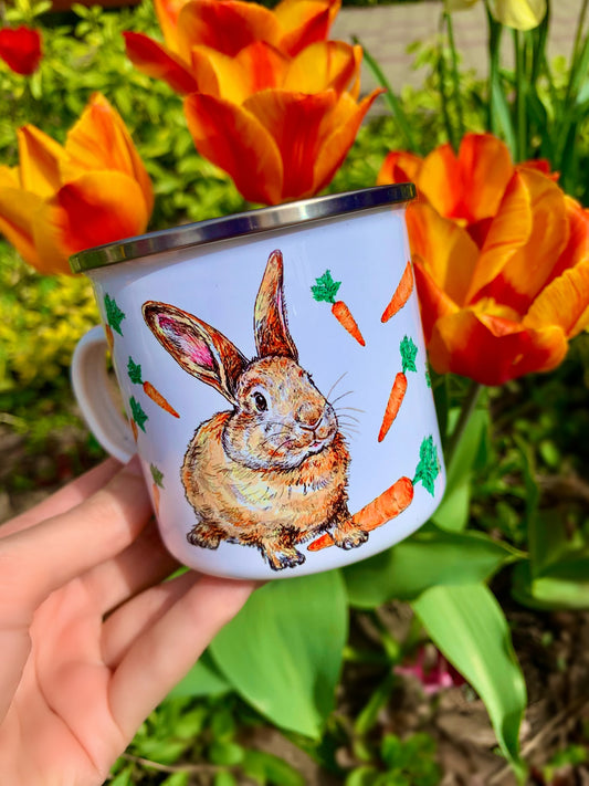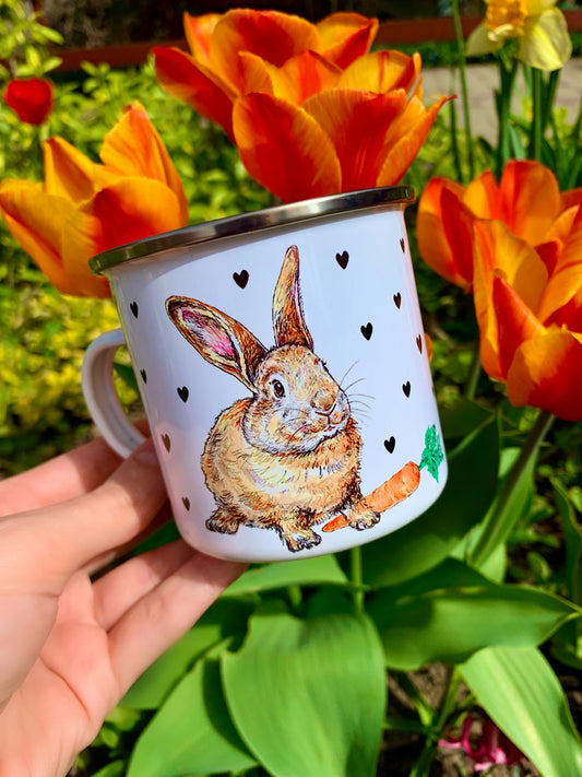 Nyuszi bögre - Barna nyúl és répa mintákkal - Fém