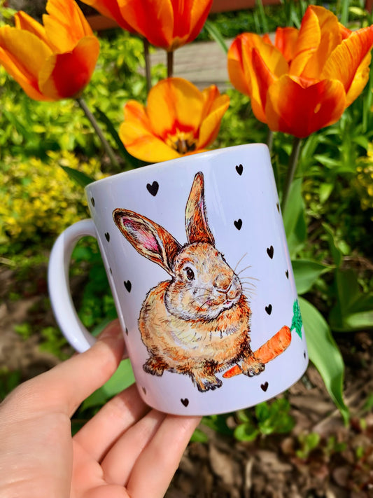Nyuszi bögre - Szürke nyúl és szív mintákkal - Kerámia