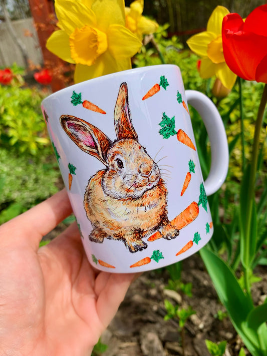 Nyuszi bögre - Barna nyúl és répa mintákkal - Kerámia