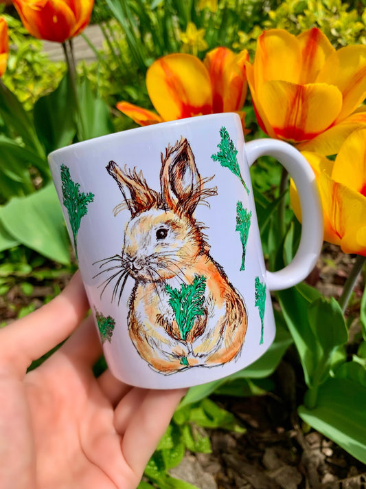 Nyuszi bögre - Barna nyúl és petrezselyem mintákkal - Kerámia