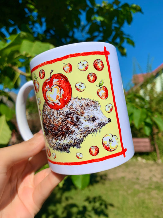 Red Dachshund mug - Mazsola Barna Tacskó bögre - Gyümölcsös háttérrel