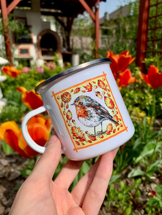 Tacskó mintás fém bögre - Kézzel festett Cser Tacskó és egyedi Kirándulós mintákkal