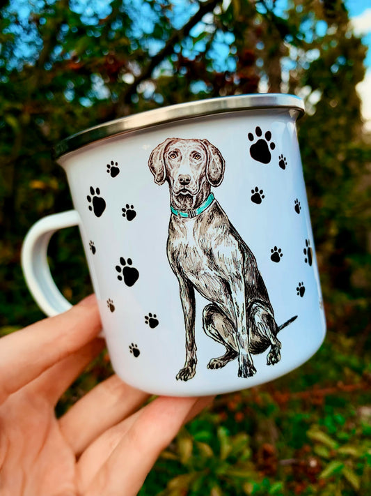 Weimari Vizsla bögre - Ülő Vizsla mintával és mancsokkal - Fém