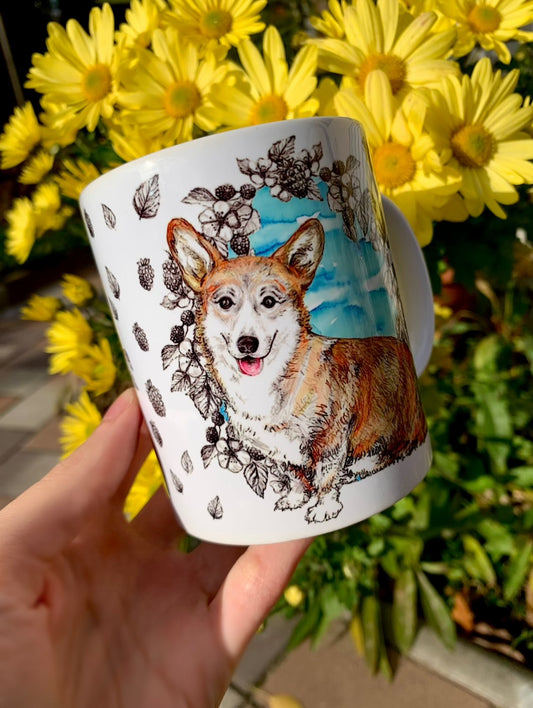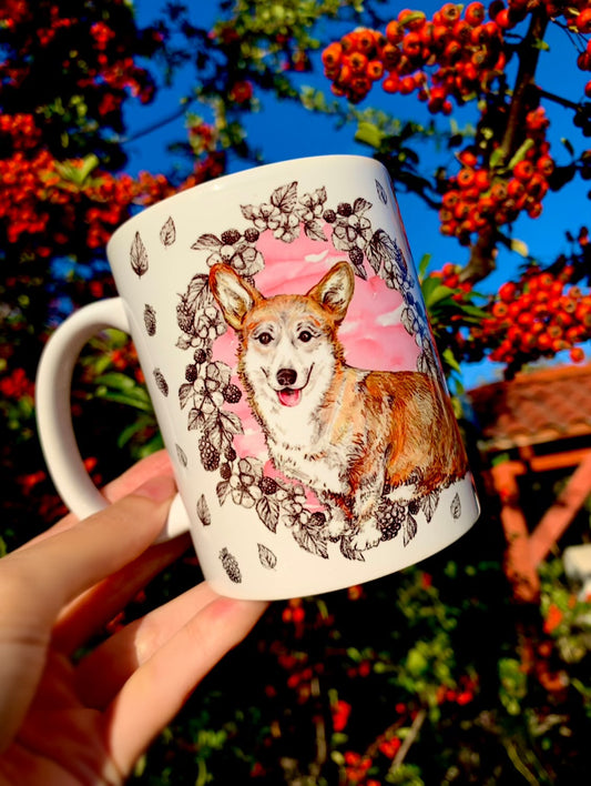 Corgi kutya bögre - Corgi kutya rajz és gyümölcsös mintával