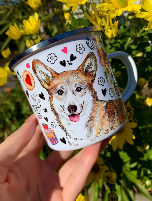 Corgi kutya bögre - Corgi kutya rajz és reggelizős mintával