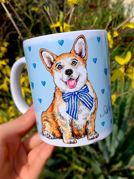 Corgi kutya bögre - Corgi kutya és kék szív mintákkal