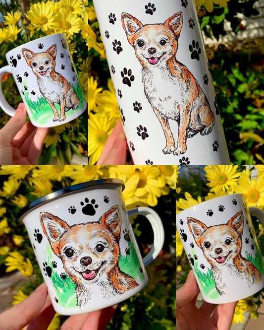 Csokibarna Merle Tacskó fém bögre - Kézzel festett Chocolate Merle tacskó és Mancs mintákkal - Egyedi név kérhető rá