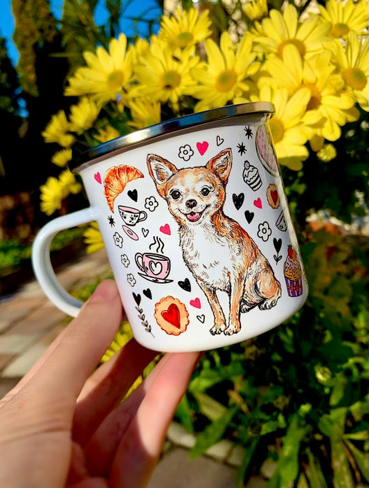 Csokibarna Tacskó fém bögre - Kézzel festett Chocolate tacskó és Mancs mintákkal - Egyedi név kérhető rá