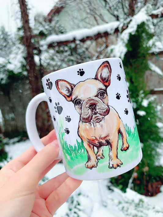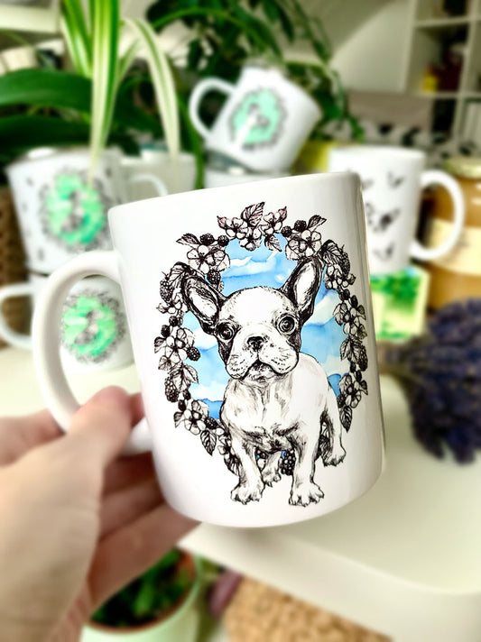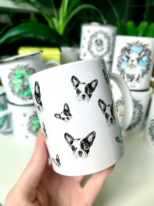 Francia bulldog bögre - 2 féle francia bulldog kutya és nyári motívumokkal - Fém