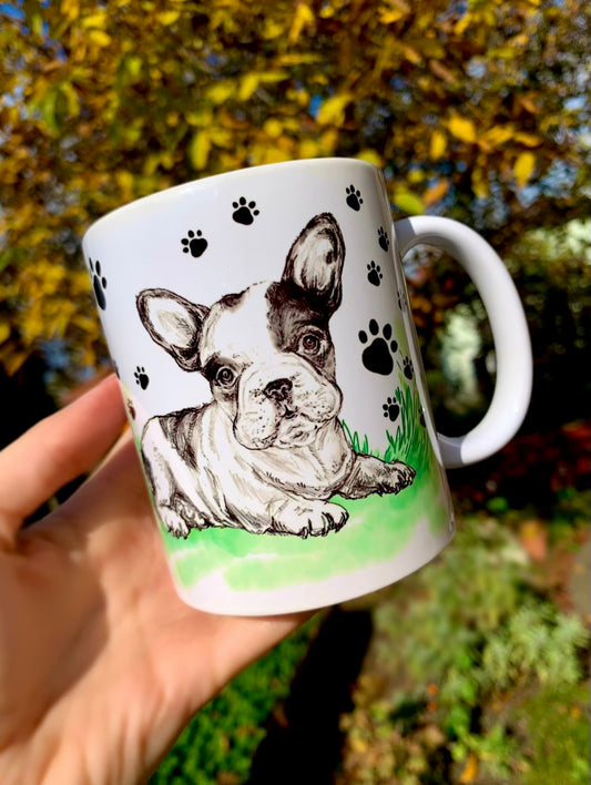 French Bulldog mug - Foltos Francia Bulldog bögre - Mancsos mintával - Kerámia