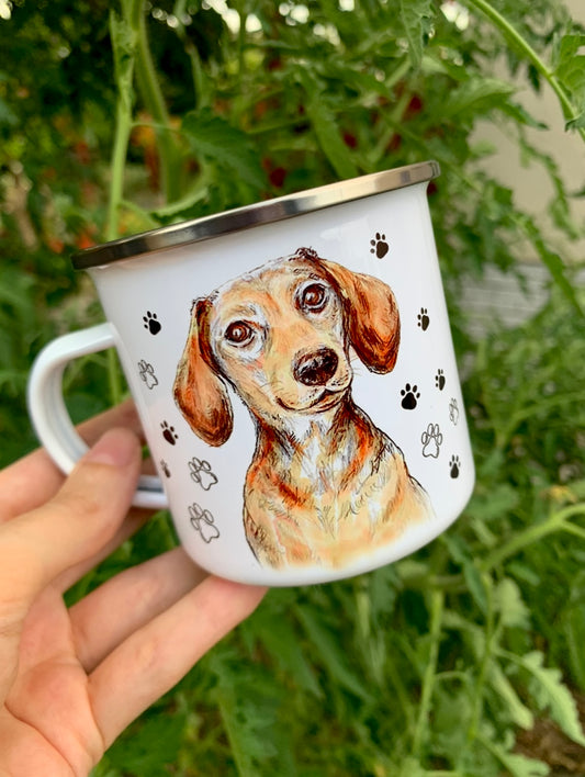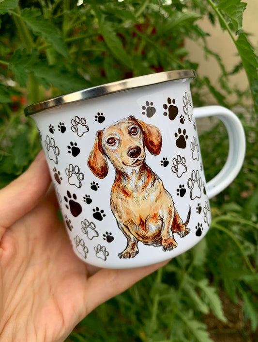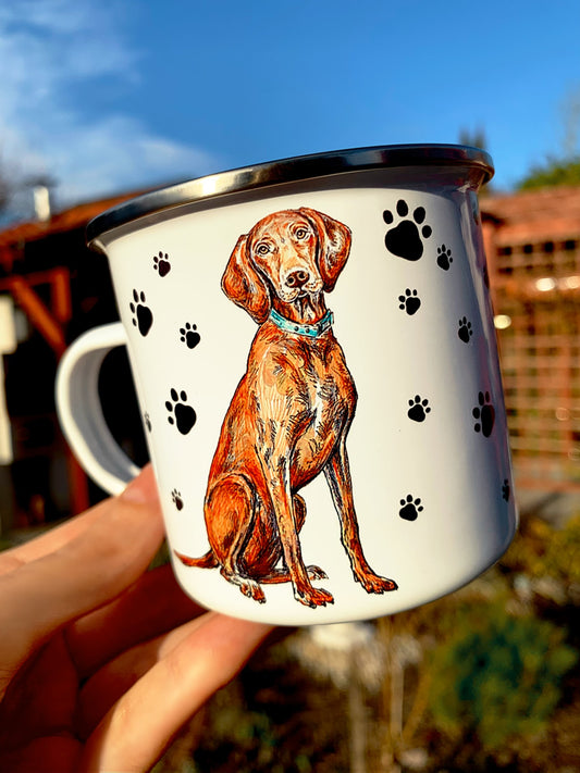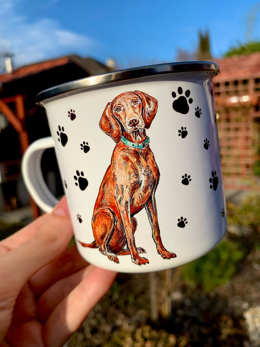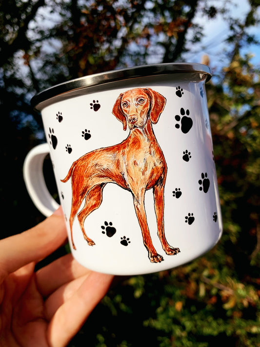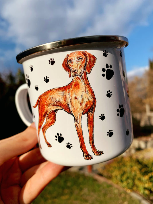 Magyar Vizslás fém bögre - Kézzel rajzolt vizsla és mancs mintákkal