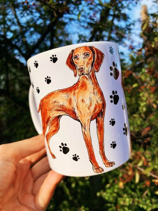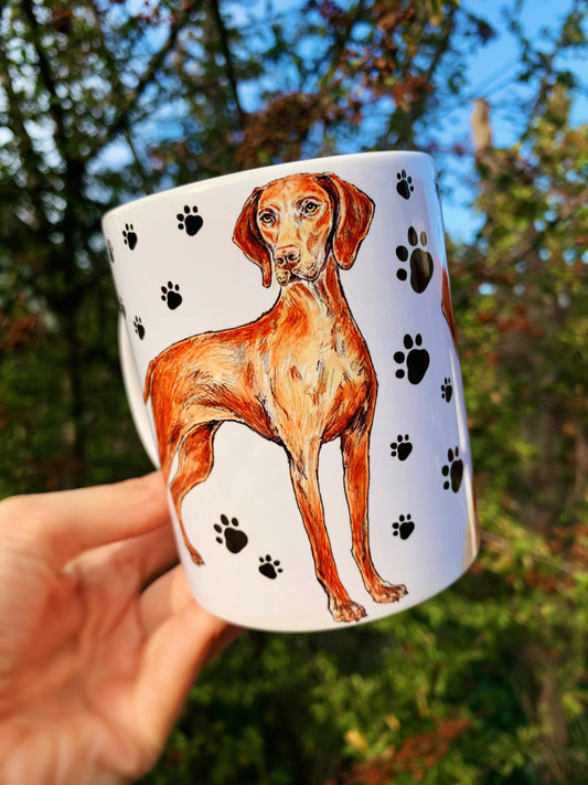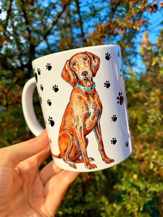 Magyar Vizsla bögre - Álló Vizsla mintával és mancsokkal - Kerámia