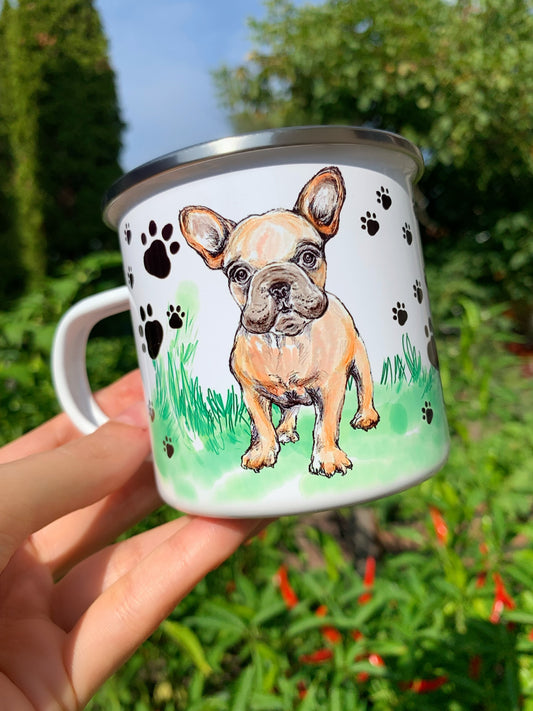 French Bulldog mug - Barna Francia Bulldog bögre - Álló & Fekvő Bulldog Mintával - Fém