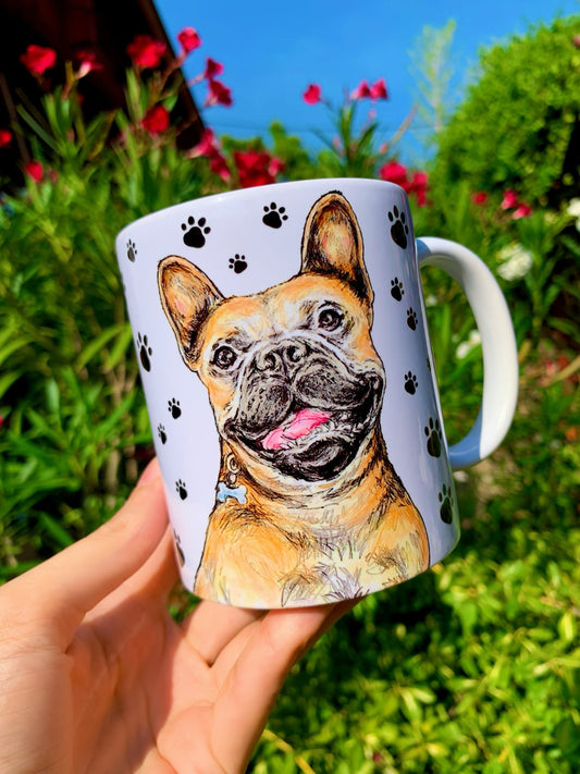 French Bulldog mug - Barna Francia Bulldog bögre - Mancsos mintával - Kerámia