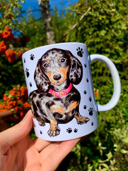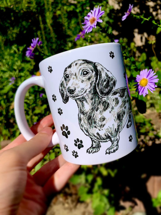 Merle Tacskós bögre - Kézzel festett merle Tacskó és mancs mintával