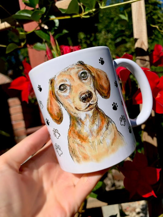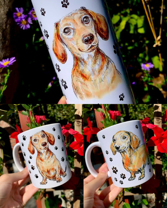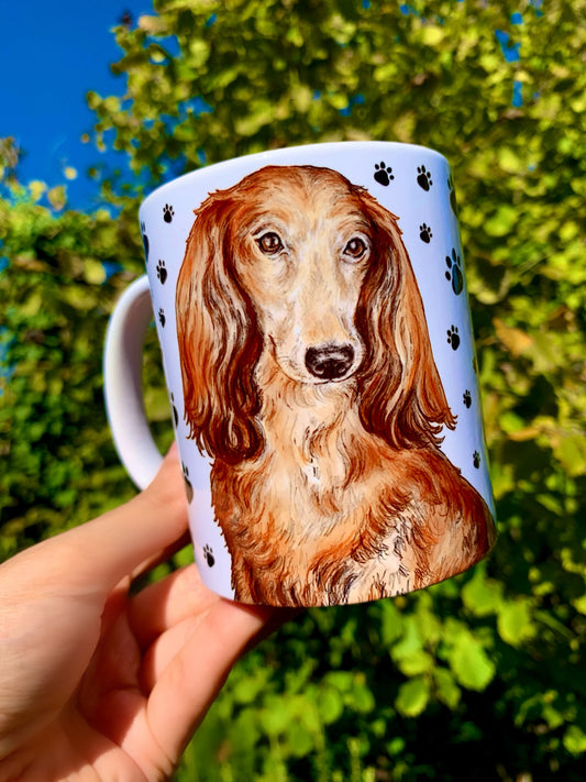 Long haired dachshund mug - Hosszúszőrű Tacskó bögre - Mancsokkal - Kerámia