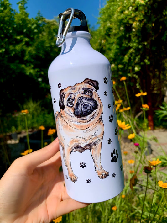 Mopsz Kulacs – Kézzel festett álló Mopsz kutya és mancs mintával