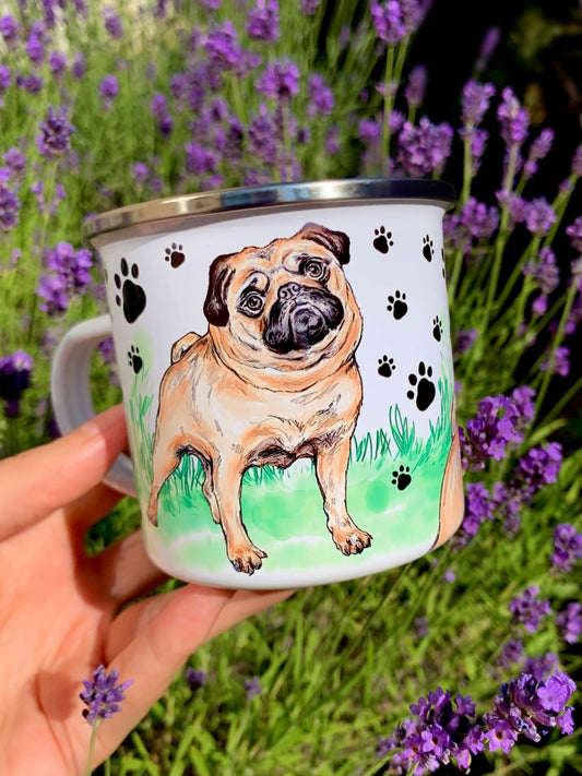 Mopsz Fém bögre – Kézzel festett Mopsz kutya és mancs mintával