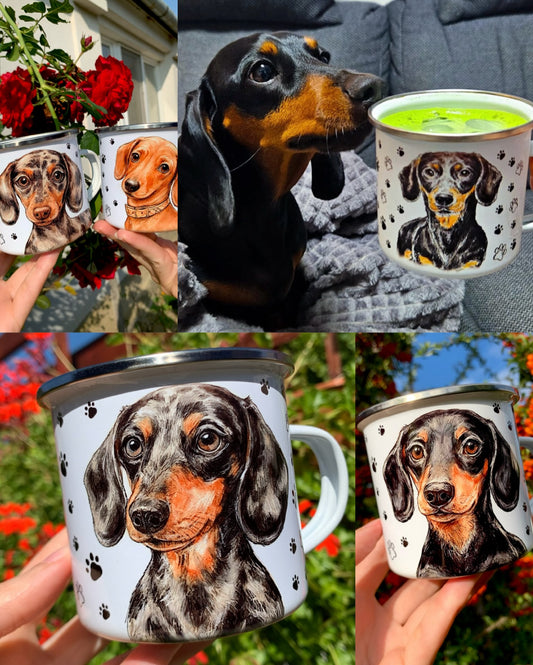 Merle Tacskós fém bögre - Kézzel festett Merle Tacskó mintával