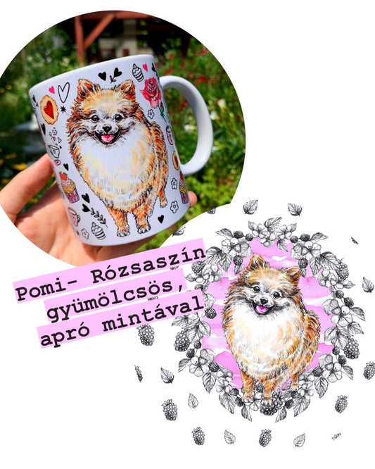 Pomerániai törpespicc bögre - 4 féle Pomi kutya mintával