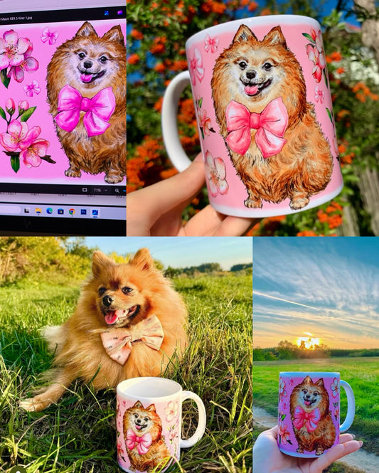 Pomerániai Törpespicc kutya bögre - Pomi kutya és Virágos mintával