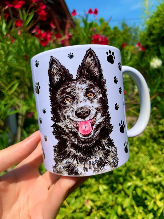 Mudi kutya bögre - Merle Mudi kutya rajz és Mancs mintával
