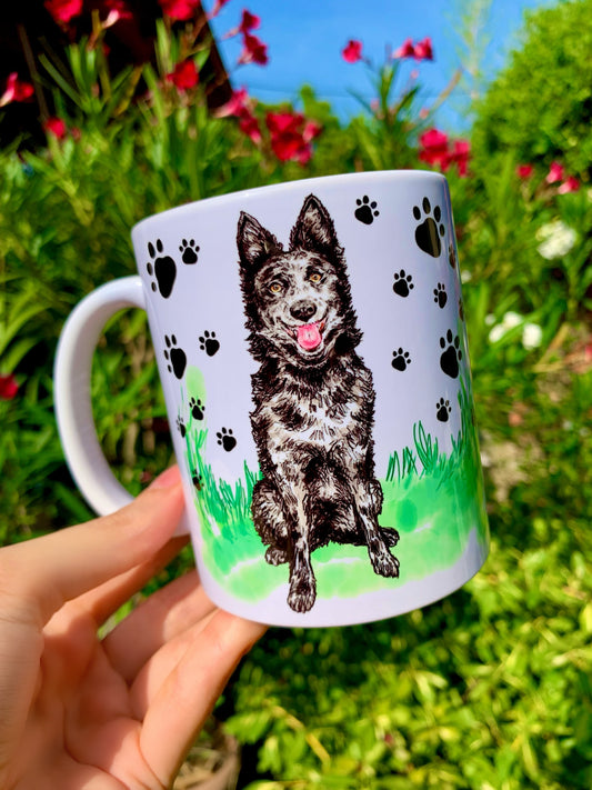 Mudi kutya bögre - Merle Mudi kutya rajz & Mancs és fű mintával