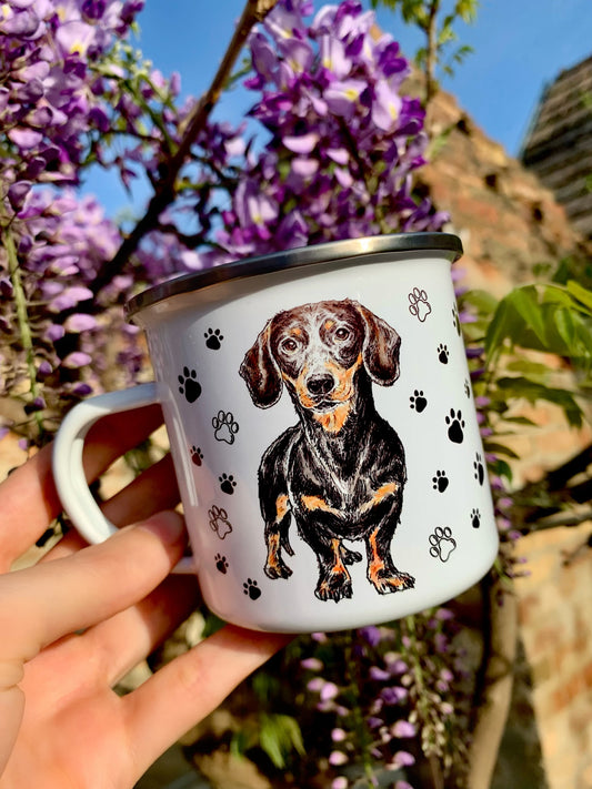 Barna Tacskós fém bögre - Kézzel festett mazsola barna Tacskó mintával