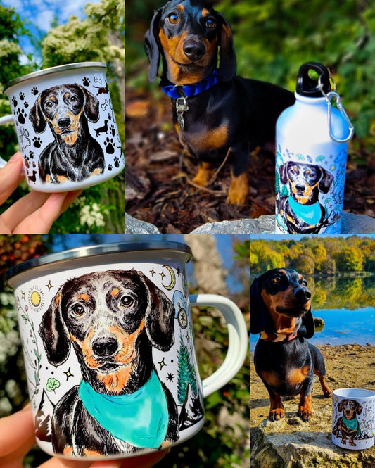 Egyedi, kézzel rajzolt kutyás mintákkal díszített kulacsaink tökéletesek sétákhoz, kirándulásokhoz, edzéshez vagy munkába – praktikusak, stílusosak, és remek kutyás ajándékok is.