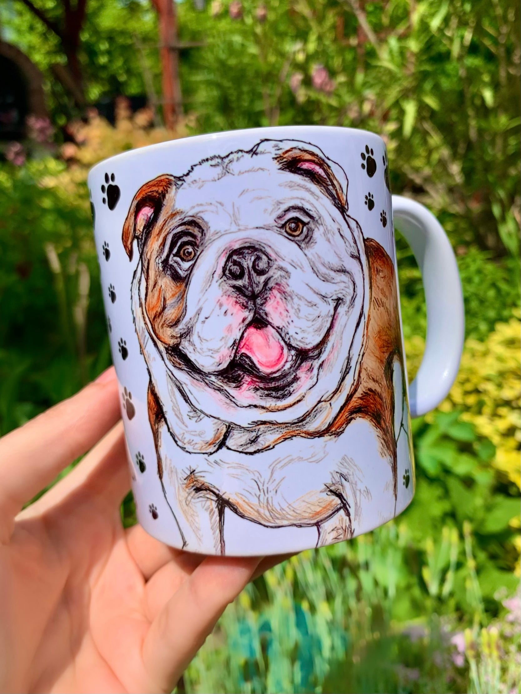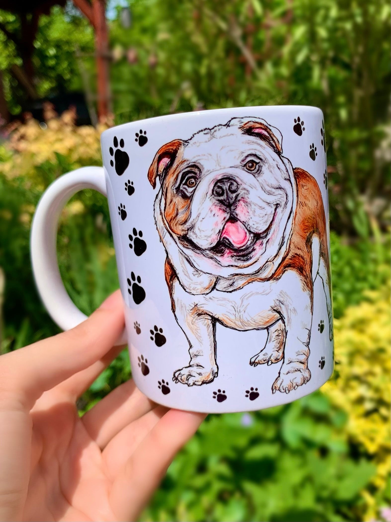 🐶 Ismerd meg a legújabb kutyás kedvencünket: itt a kézzel rajzolt angol bulldogos kerámia bögre – azoknak, akik imádják ezt a nyugodt, erős testalkatú, szeretetteljes és hűséges kutyafajtát!