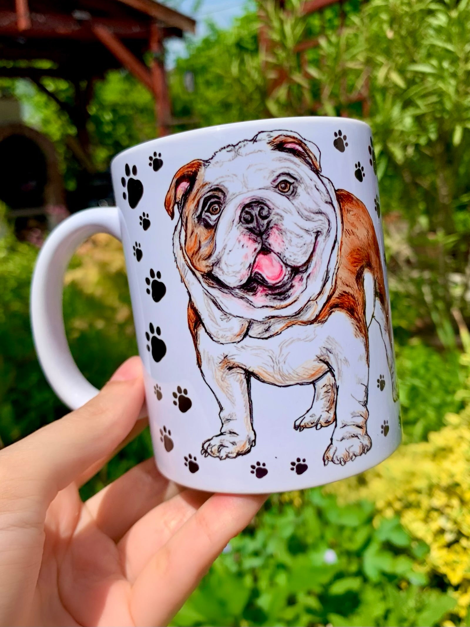 Angol bulldogos kerámia bögre – Kézzel festett angol bulldog és mancs mintával