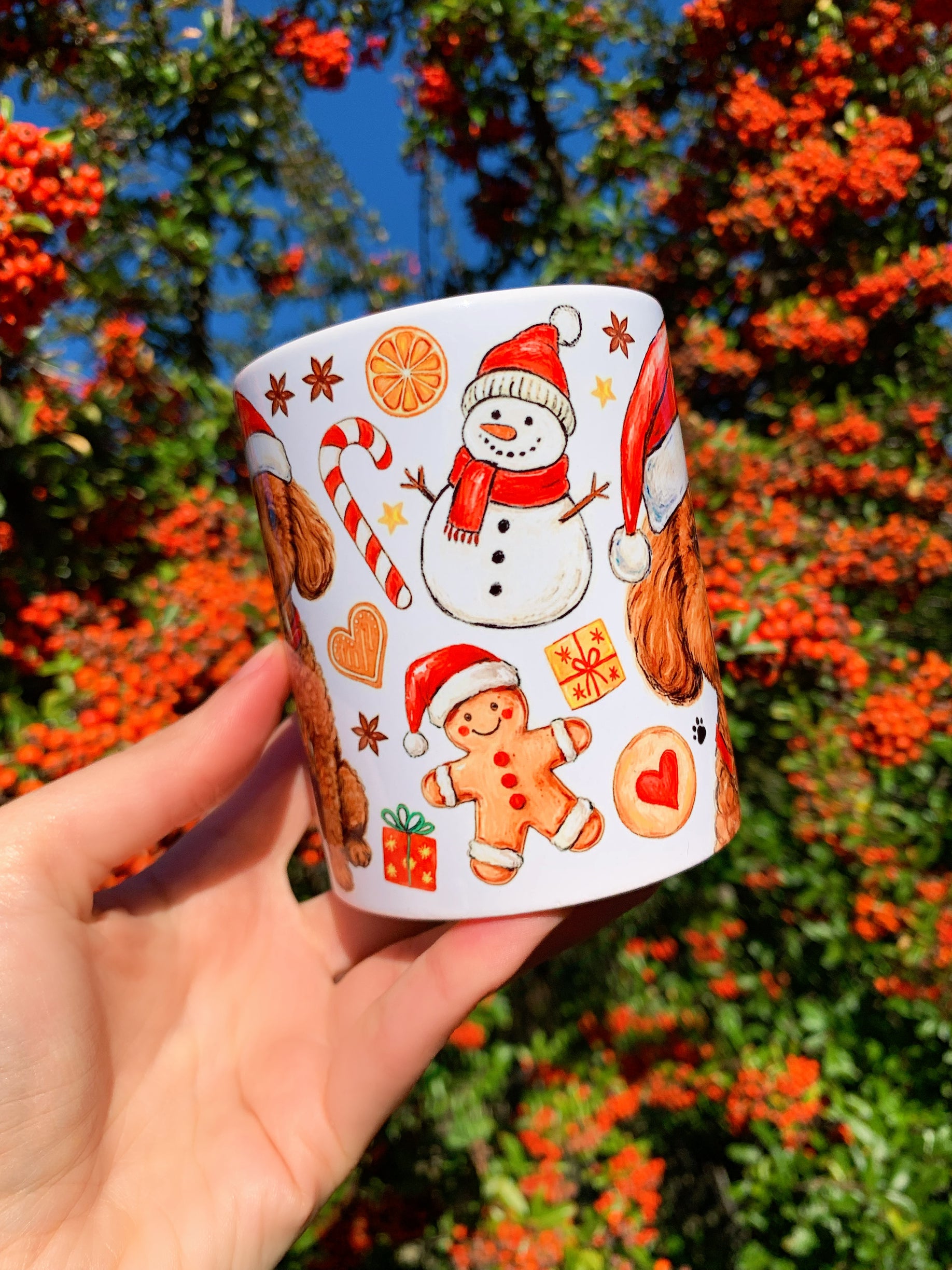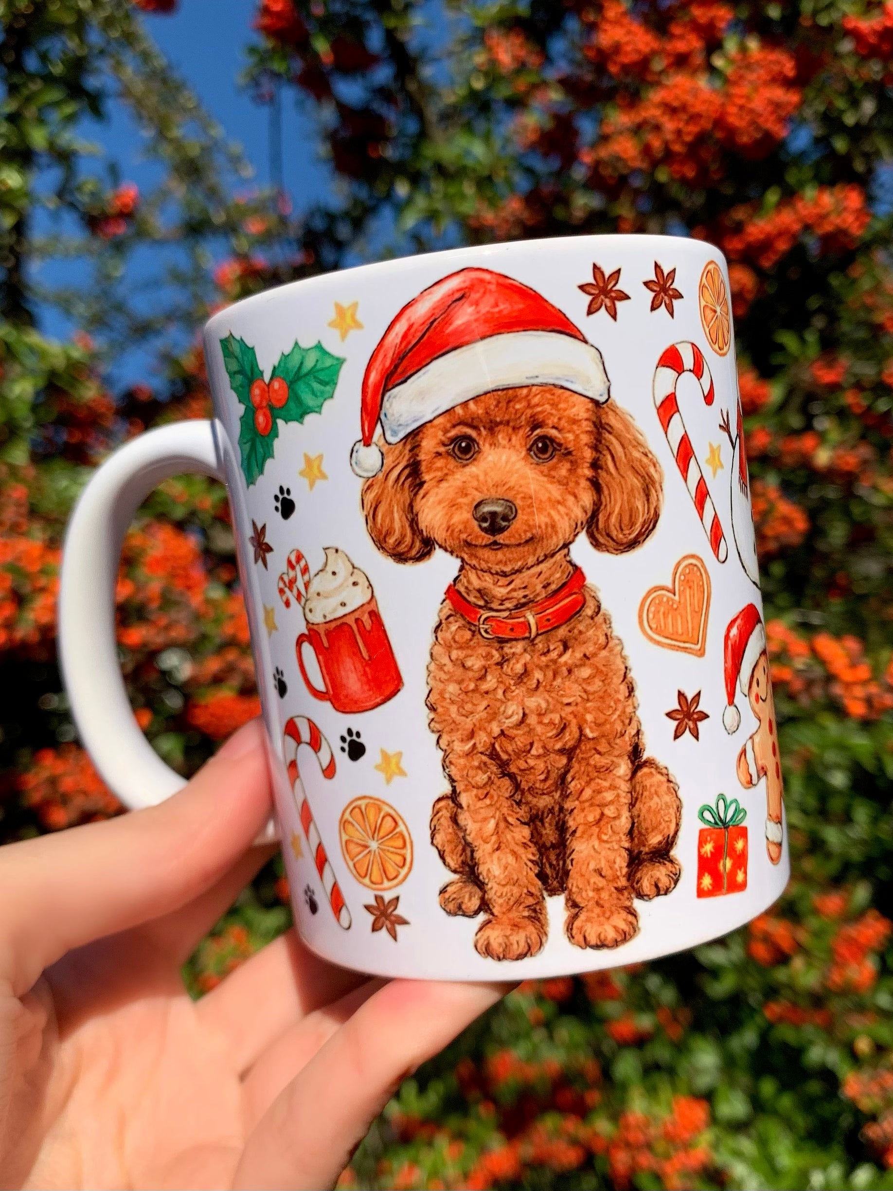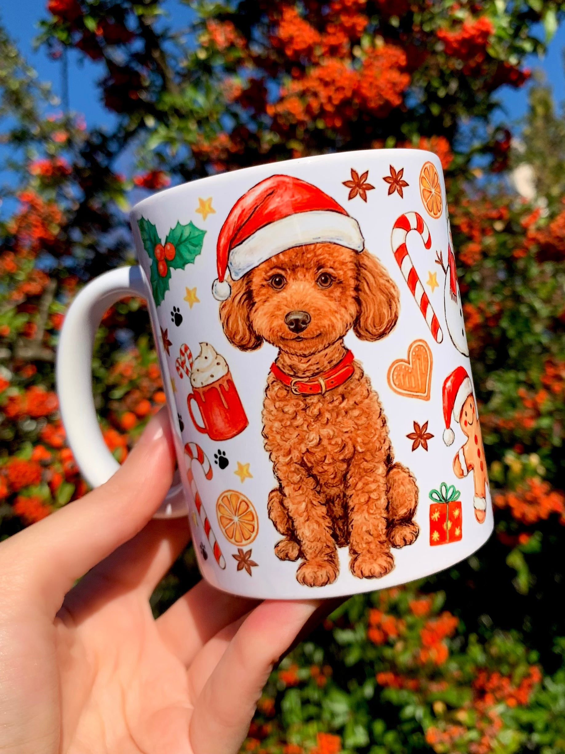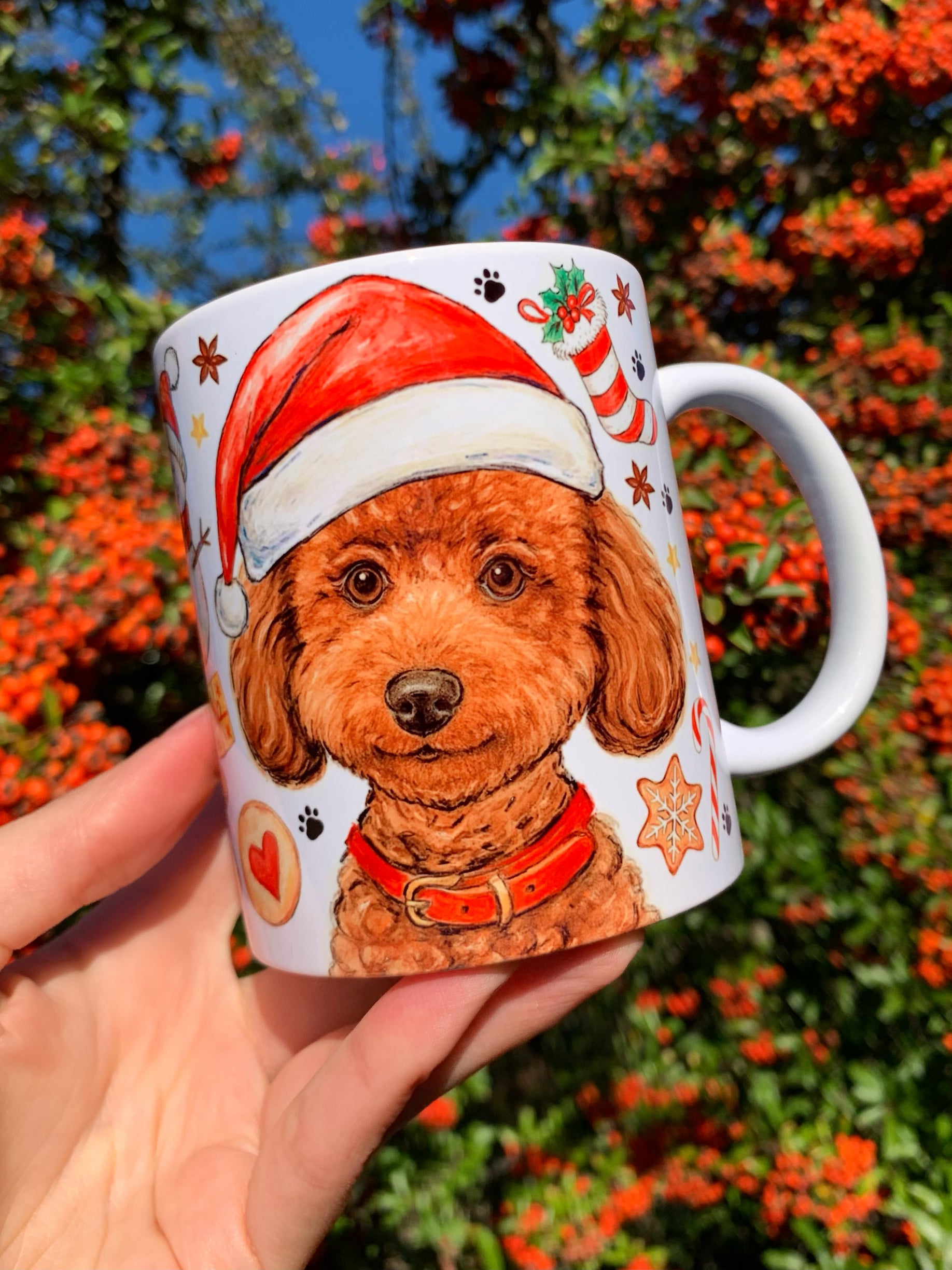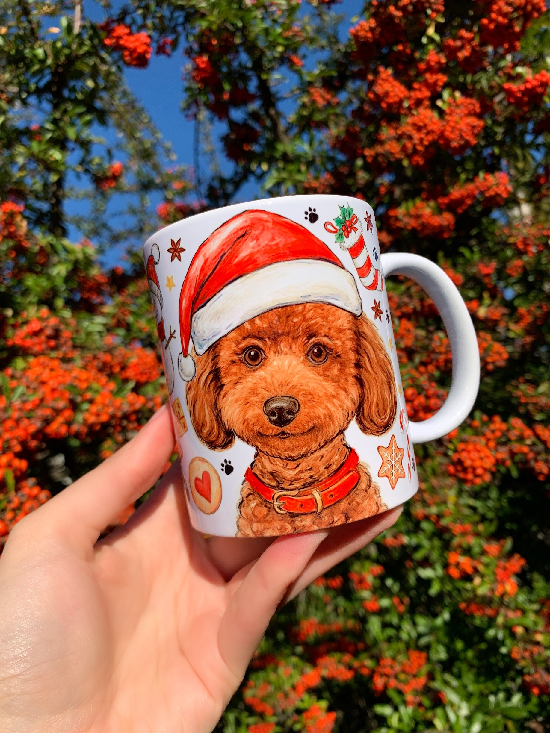 A bögre egyedi, ünnepi és kézzel rajzolt-festett Toy Poodle mintájával minden kávézást és teázást még meghittebbé tesz.