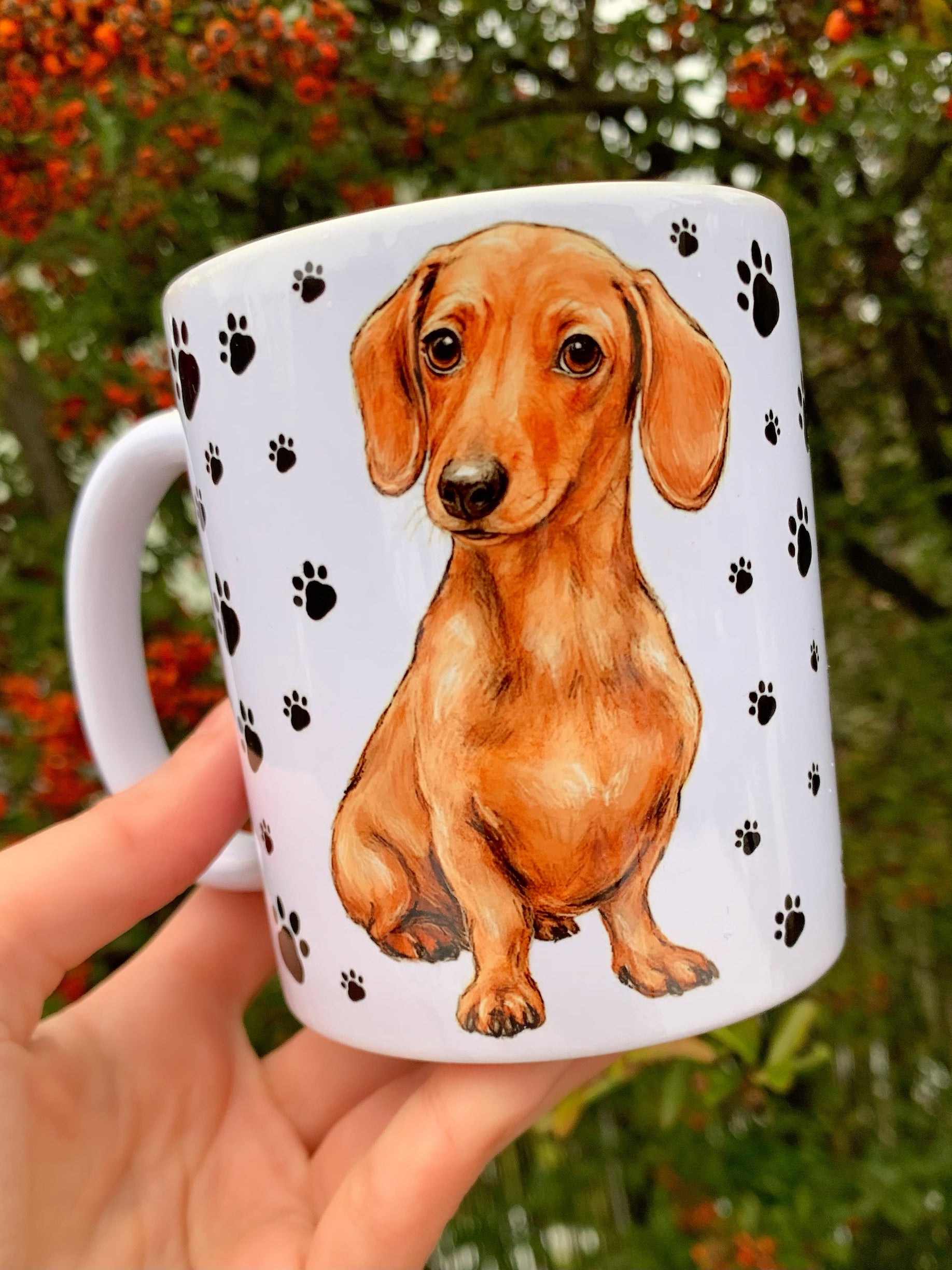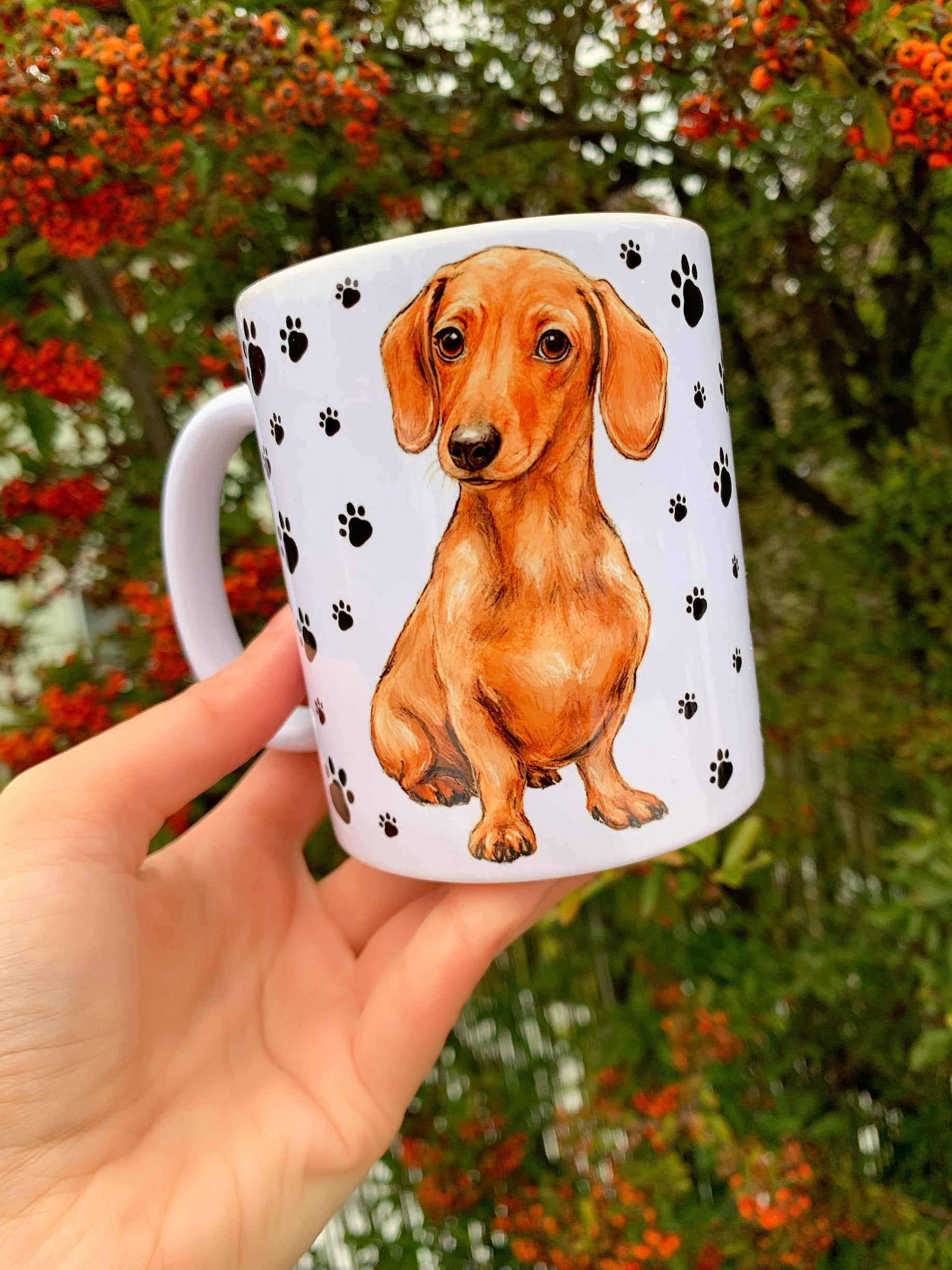 Prémium Barna Tacskós bögre - Kézzel festett Barna Tacskó mintával és mancsokkal