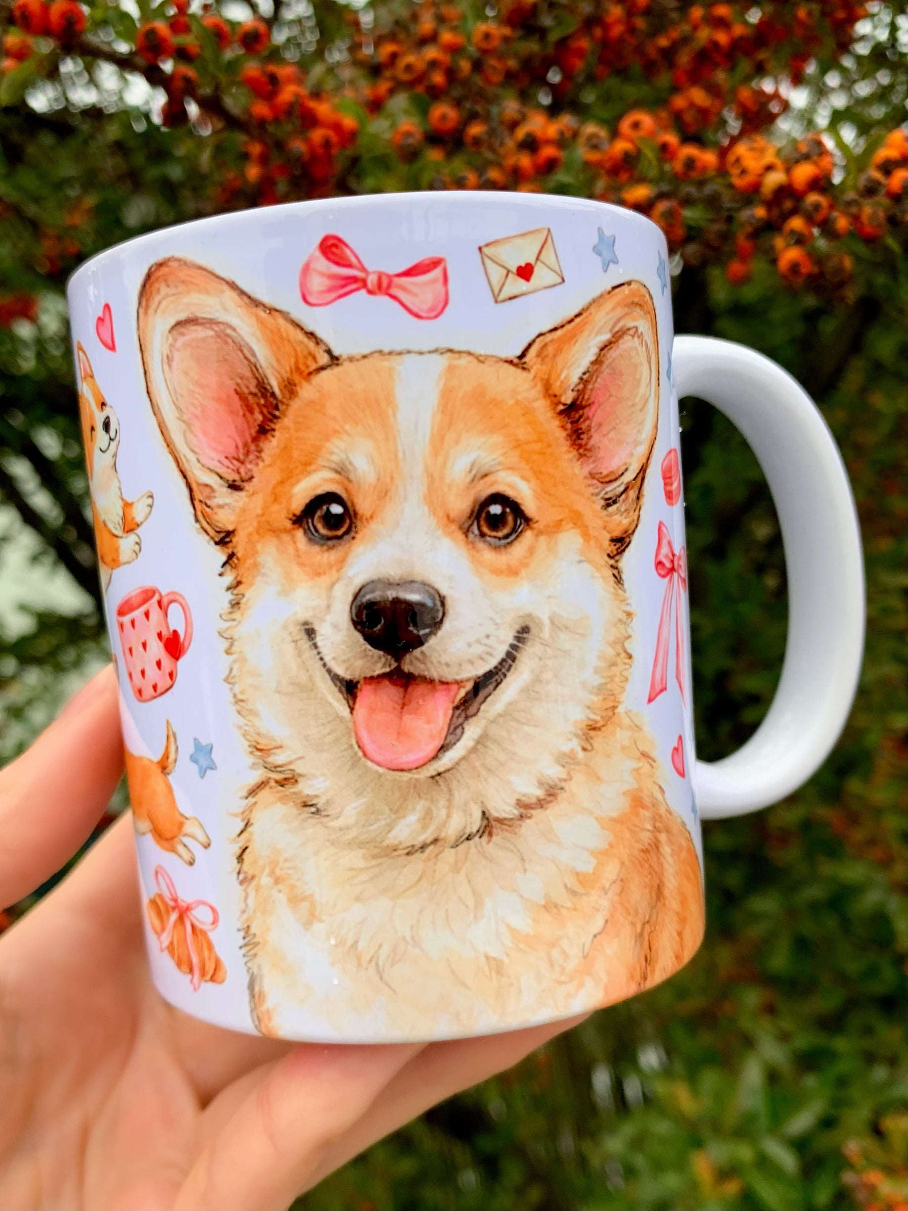 A bögre egyedi, kézzel rajzolt és festett corgis mintájával minden kávézást és teázást különlegessé varázsol.