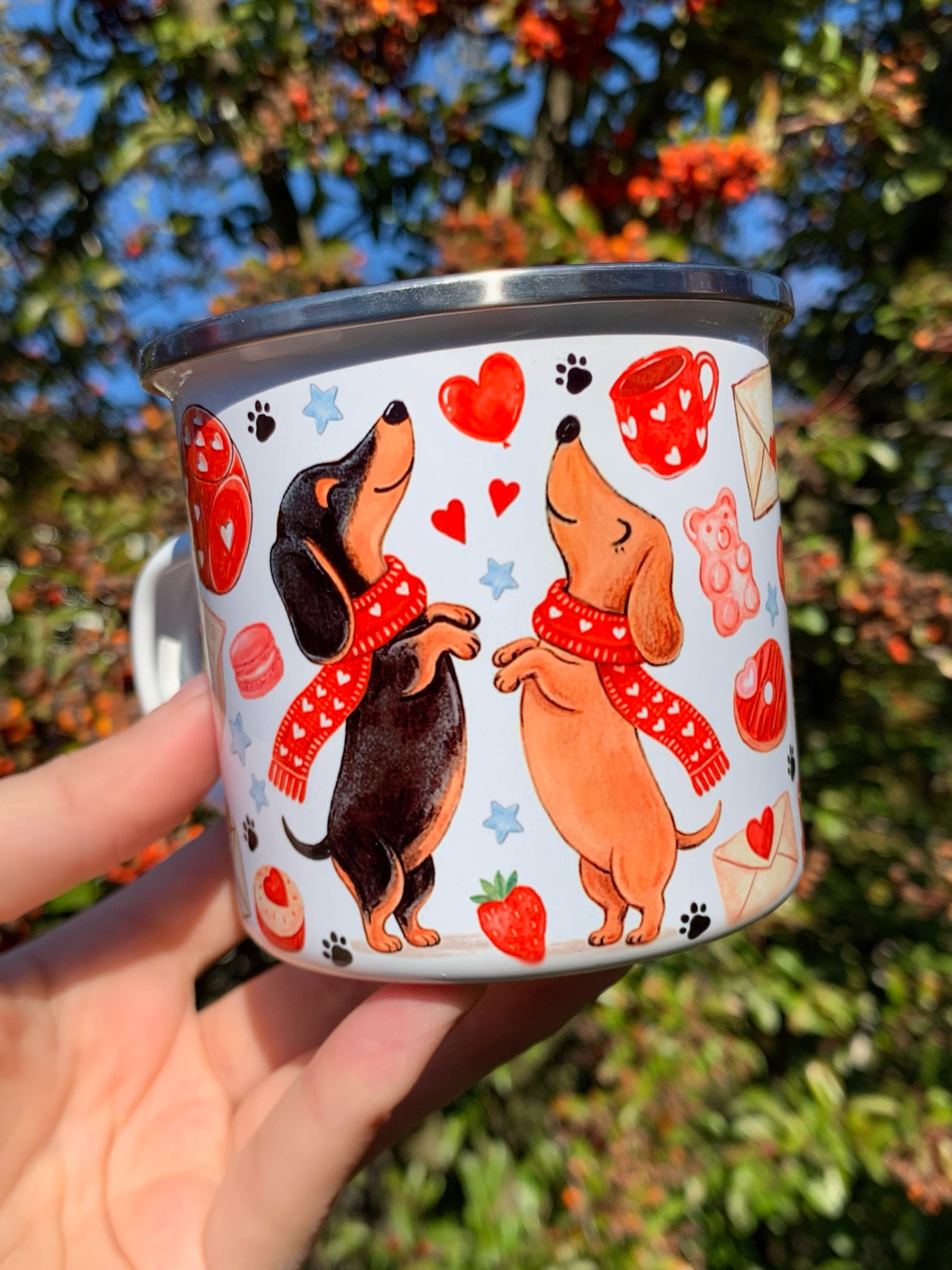 🎁🐾 Tacskó gazdik figyelem! – Kézzel rajzolt Tacskós fém bögre!