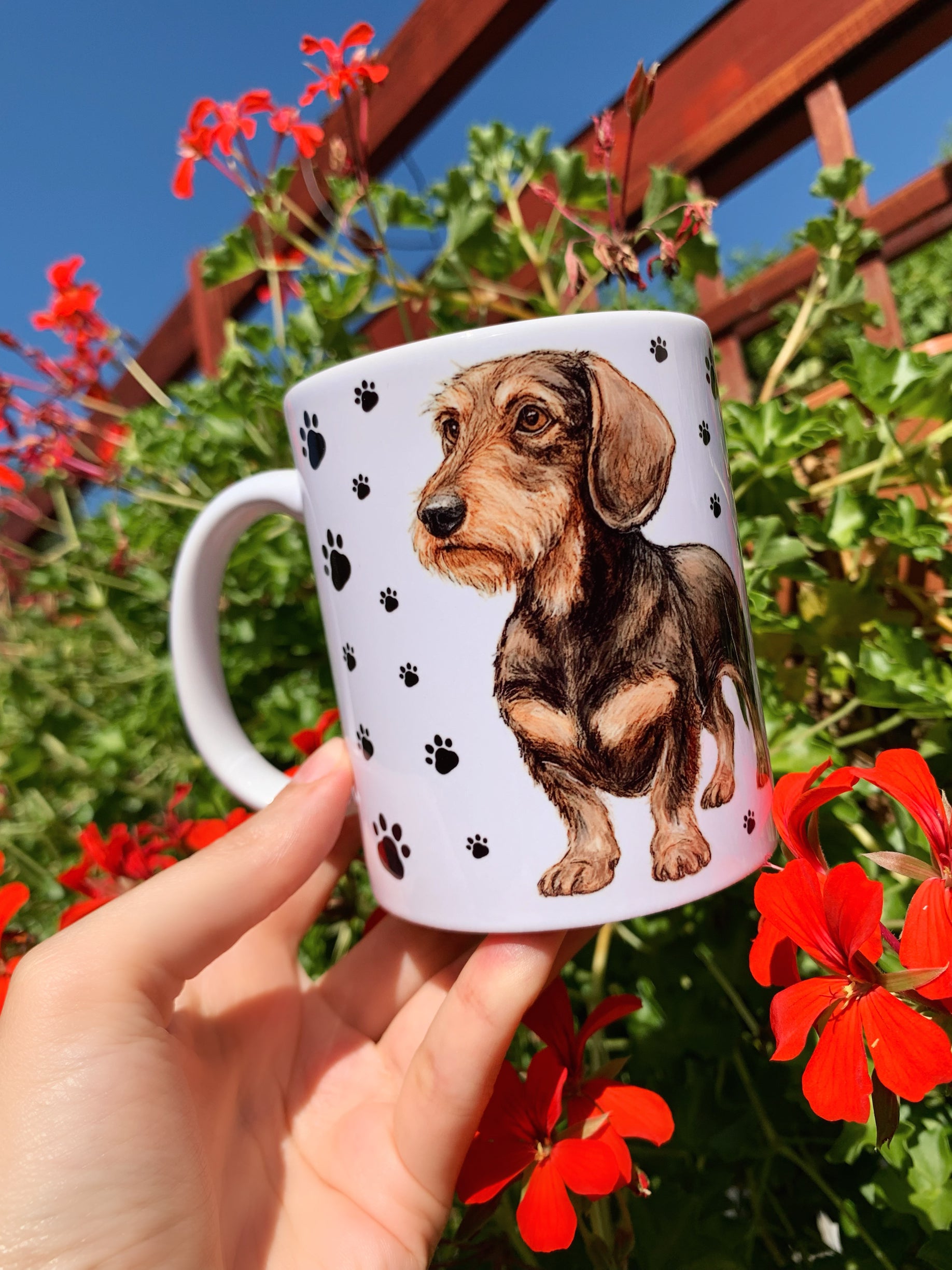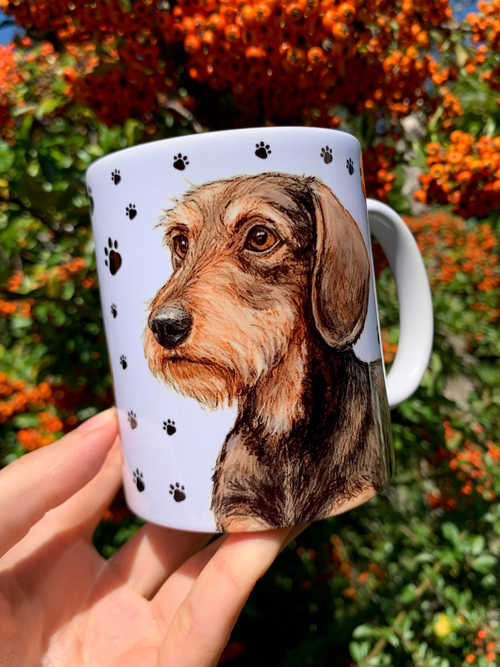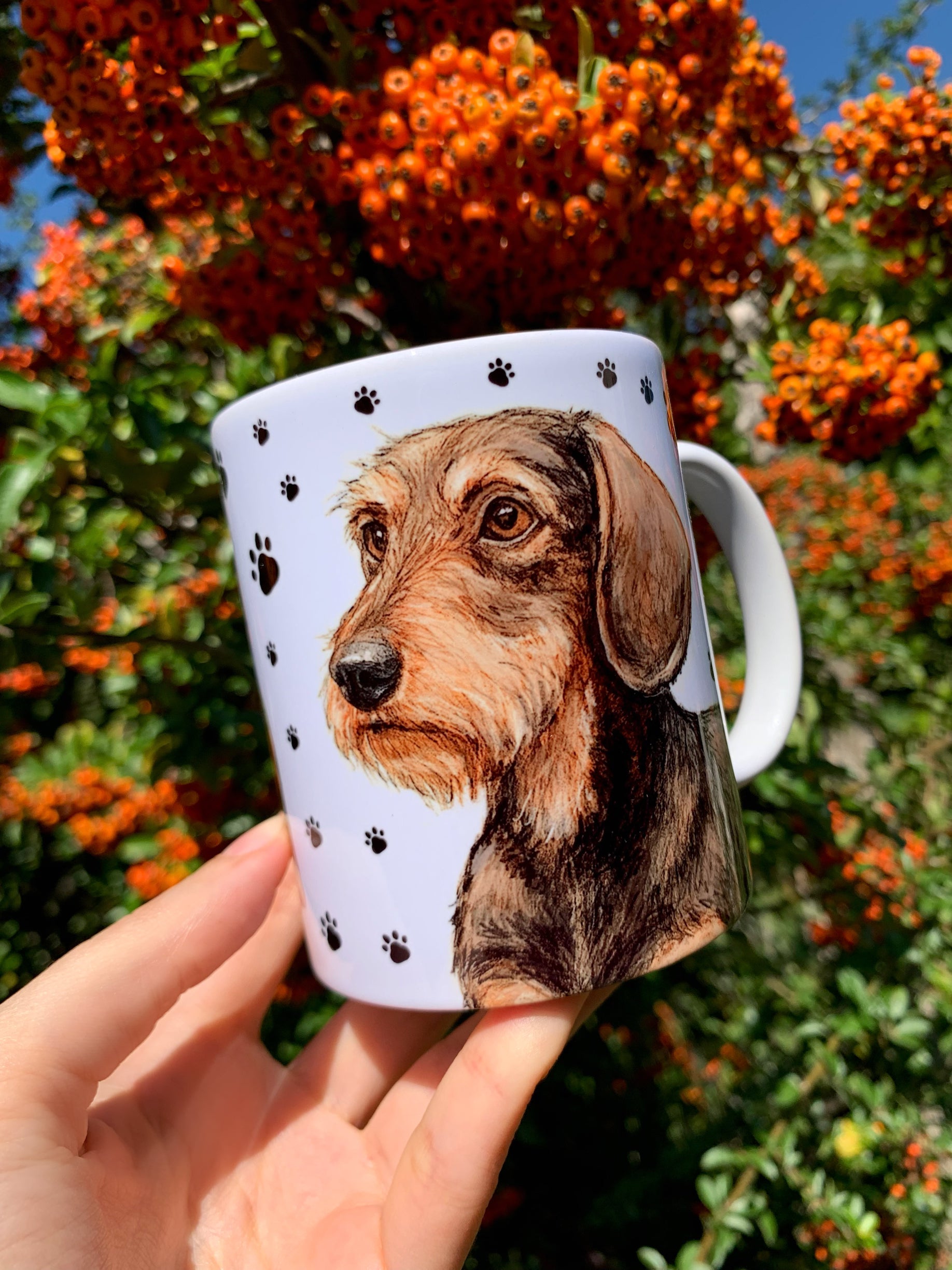 Szálkásszőrű Tacskós bögre - Kézzel festett álló Tacskó és mancs mintával